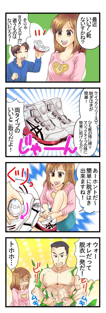 4位のモデルの限定カラーです。アシックスの新型Boaシステムワイヤーがサイドにあるため、よりフィットして締められます。